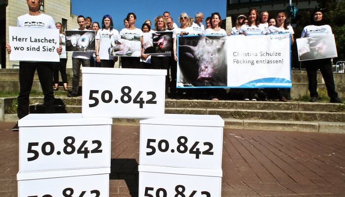 50.842 Unterschriften – so viele Menschen haben bis zum Stichtag unseren Online-Appell unterzeichnet, der die Entlassung der nordrhein-westfälischen Landwirtschaftsministerin Christina Schulze Föcking fordert. Doch der Ministerpräsident Armin Laschet (CDU), an den sich unser Appell richtet, hatte offensichtlich kein Interesse, die Unterschriften persönlich entgegenzunehmen: Eine Terminanfrage für die Übergabe hat er absagen lassen.
