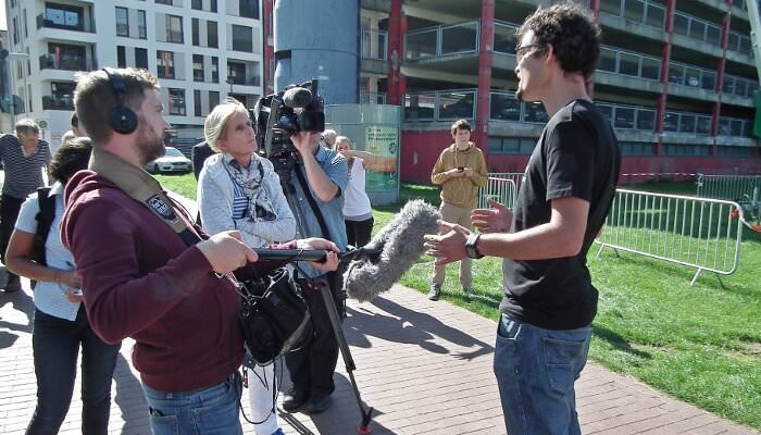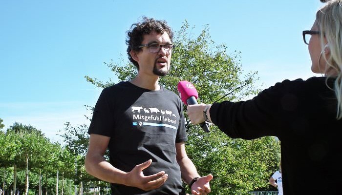 Zeitungen und Radiosender waren ebenfalls vertreten. Wir mussten in Interviews den Journalist:innen Rede und Antwort stehen. Viele wollten wissen, warum sich unser Protest jetzt nicht erledigt habe, wo doch die Staatsanwaltschaft keine Ermittlungen gegen die Ministerin eingeleitet hat. Zum Zeitpunkt der Aufnahmen sei sie nicht mehr für den Betrieb verantwortlich gewesen, so die Begründung der Staatsanwaltschaft.