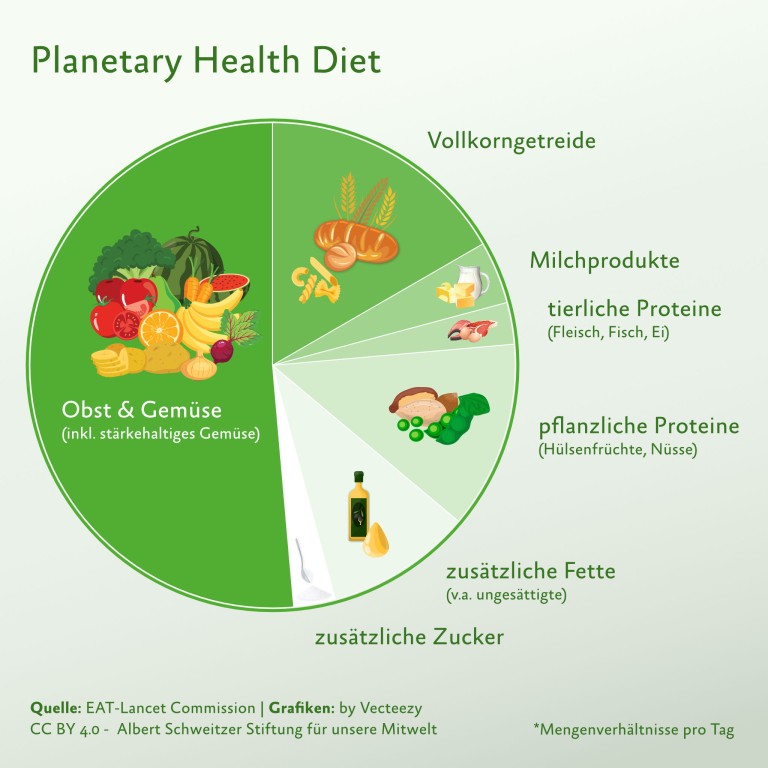 Unsere Ernährung beeinflusst nicht nur die eigene Gesundheit, sondern auch das Klima, unsere Umwelt und das Leben unzähliger Tiere. Die sogenannte Planetary Health Diet wurde 2019 von der internationalen EAT-Lancet-Kommission entwickelt. Ziel dieses Konzepts ist eine Ernährungsweise, die sowohl der menschlichen Gesundheit als auch den ökologischen Belastungsgrenzen unseres Planeten gerecht wird. Bis zum Jahr 2050 könnten so weltweit bis zu zehn Milliarden Menschen nachhaltig und gesund ernährt werden.