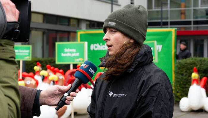 Sowohl in Amsterdam als auch in Köln konnte Anna-Maria Renner, Kampagnenleiterin bei der Albert Schweitzer Stiftung, mit Personen der Leitungsebene von Subway sprechen. Die Treffen verliefen jedoch wie zuvor ergebnislos. »Subway versteckt sich bei Gesprächen hinter einer Machbarkeitsstudie, deren Ergebnisse sie abwarten wollen. Damit lassen wir uns aber nicht abspeisen«, so Renner. »Viele Subway-Franchisenehmer unterstützen unsere Forderung ebenfalls. Mit seiner Verzögerungstaktik nimmt PR-Direktor Marc van der Lee weder sie noch die Kunden wirklich ernst.« Van der Lee, Director PR & CSR am europäischen Hauptsitz von Subway, arbeitete zuvor rund 30 Jahre in der Fleischindustrie, unter anderem bei Vion.