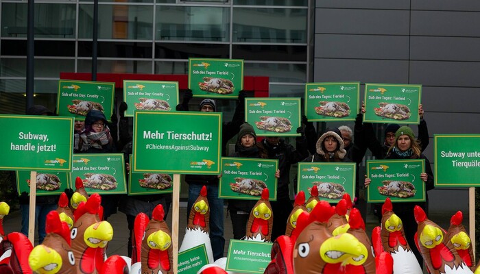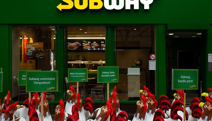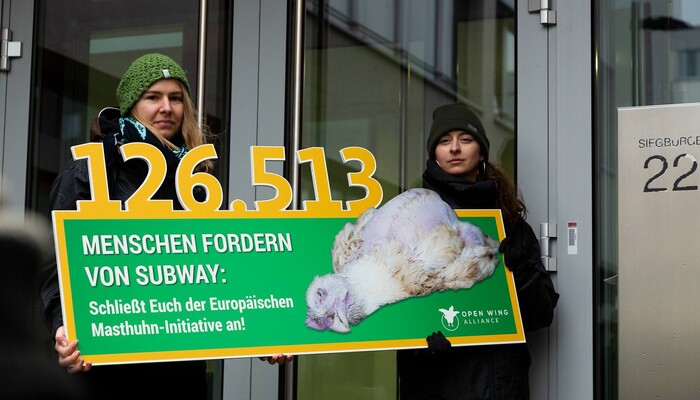 Schon seit zwei Jahren versuchen die Tierschutzorganisationen Subway in Gesprächen dazu zu bewegen, sich der Europäischen Masthuhn-Initiative anzuschließen und damit machbare Verbesserungen für die Tiere bei seinen Lieferanten durchzusetzen. Doch das mit 42.000 Restaurants größte Franchiseunternehmen der Welt weigert sich hartnäckig – obwohl Subway in den USA und in Kanada bereits seit 2017 Mitglied einer ähnlichen Initiative für Masthühner ist. Weltweit sind mehr als 260 Unternehmen bei der Europäischen Masthuhn-Initiative mit an Bord, darunter KFC, Pizza Hut oder Nestlé.