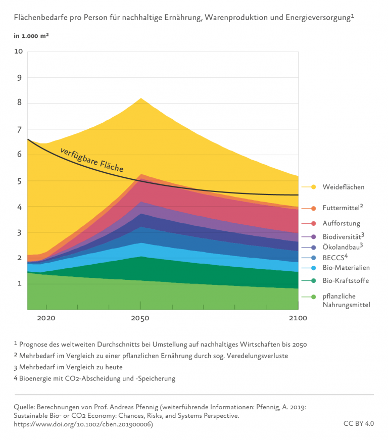 Um den Klimawandel auch langfristig zu begrenzen und Klima-Kipppunkte zu vermeiden, müssen wir außerdem in absehbarer Zeit Kohlendioxid aus der Atmosphäre entfernen. Dies kann gelingen, indem wir Wald aufforsten und mehr Bio-Energie nutzen. Hierfür benötigen wir weitere Landflächen.