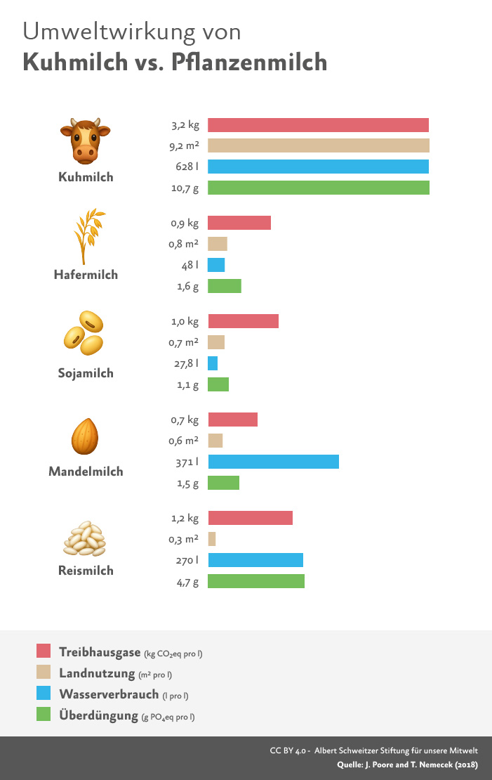 | Landnutzung | 0,34 m² | 96 % weniger als Kuhmilch |