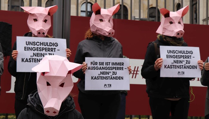 Der ursprüngliche Entwurf aus dem Bundeslandwirtschaftsministerium von Ministerin Julia Klöckner sah vor, dass Millionen Sauen in Deutschland für weitere 15 Jahre rund die Hälfte ihres Lebens in den körperengen Metallkäfigen fristen müssen. Eine bereits seit 28 Jahren bestehende Vorgabe, wonach sie zumindest ihre Beine in Seitenlage ausstrecken können müssen, ohne an ein Hindernis zu stoßen, sollte sogar gestrichen werden – weil sich viele Tierhalter:innen bis heute weigern, sie umzusetzen. Erst nach den 15 Jahren sollen die Kastenstände etwas verbreitert und der Aufenthalt der Tiere darin verkürzt werden.