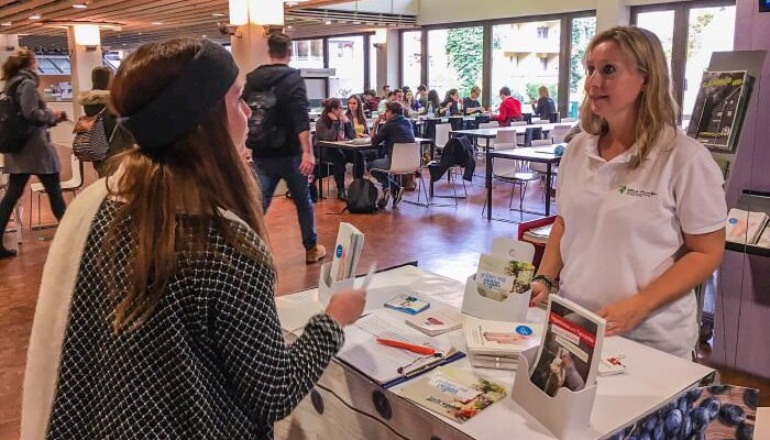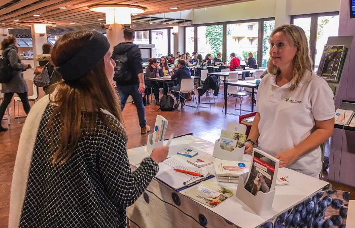 Tatkräftig begleitet wurde die Vegan Taste Week von unserer Aktionsgruppe Heidelberg. Sie verteilte Plakate sowie Broschüren, war mit einem Informationsstand vor Ort und holte das Feedback der Studierenden ein. »Die Rückmeldungen zu den veganen Gerichten waren durchweg positiv«, berichtet Luisa Schmitz, Ansprechpartnerin der Aktionsgruppe. »Es sollte jeden Tag Vegan Taste Week sein«, äußerte sich eine Studentin. Und ein Kommilitone ergänzte: »Das war mit großem Abstand das beste Essen, das ich jemals in dieser Mensa gegessen habe.« Viele Studierende zeigten sich offen für die pflanzliche Ernährungsweise und holten sich weitere Anregungen am Informationsstand.