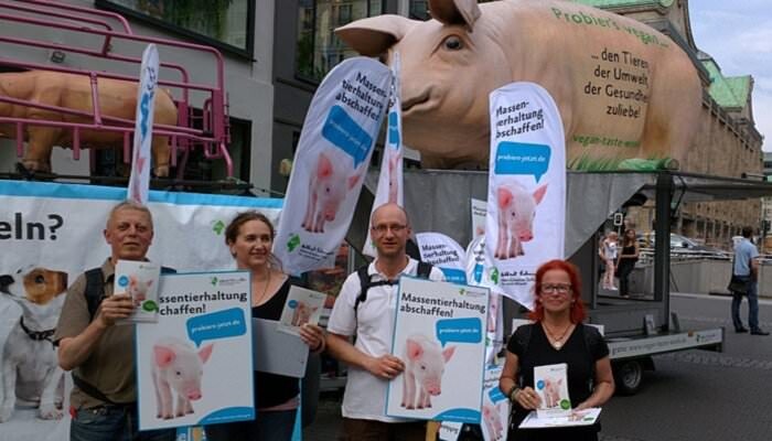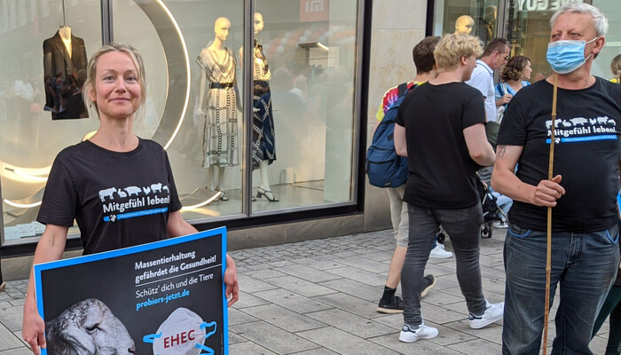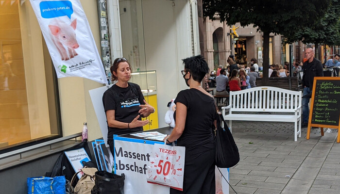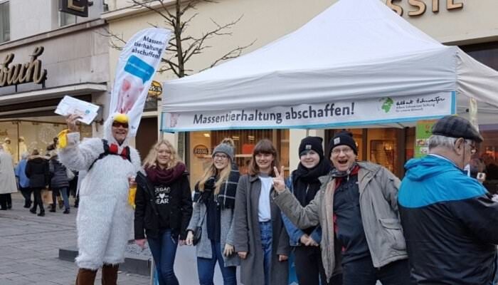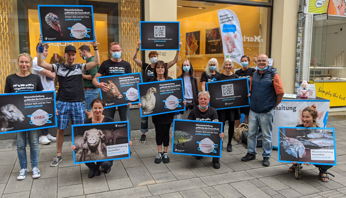 Die Aktionsgruppe Düsseldorf ist seit 2014 aktiv und führt mindestens 1x monatlich eine Aktion in der Düsseldorfer Altstadt durch. Wir wechseln zwischen verschiedenen Aktionsformen wie mobilen Moving Board Aktionen oder auch einem Stand mit Pavillon. In beiden Fällen verteilen wir die Selbst-Wenn-Broschüren, sammeln Eintragungen für die Vegan Taste Week und informieren interessierte Passant:innen zum Thema Massentierhaltung und vegane Ernährung. Im Anschluss gehen wir oft gemeinsam essen und tauschen uns aus.