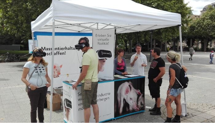 Darüber hinaus gibt es Veranstaltungen (etwa Tierschutztage), bei denen wir mit einem eigenen Infostand vertreten sind. Auch Termine wie Podiumsdiskussionen zu diversen Tierschutzthemen, Workshops, Veranstaltungen in und um Frankfurt besuchen wir gerne gemeinsam – immer im Gepäck die Selbst-Wenn-Broschüre.