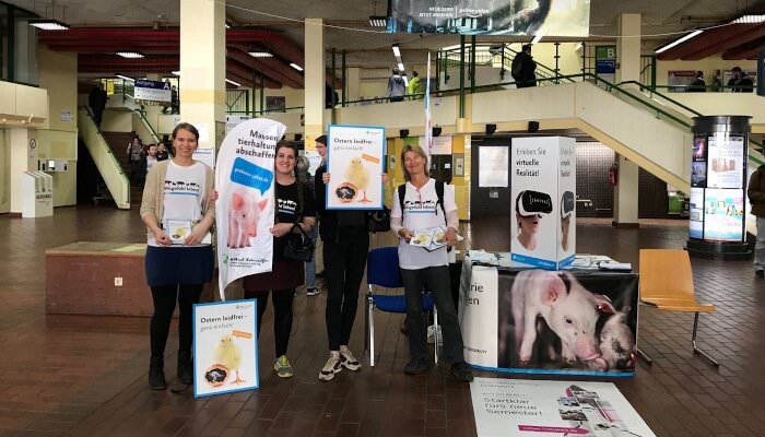 Darüber hinaus sind wir mit Infoständen bei tierrechtlichen Veranstaltungen und Straßenfesten wie z. B. dem jährlichen Tag der Tiere vor Ort. In diesem Rahmen arbeiten wir auch mit den Ortsgruppen anderer Organisationen zusammen.