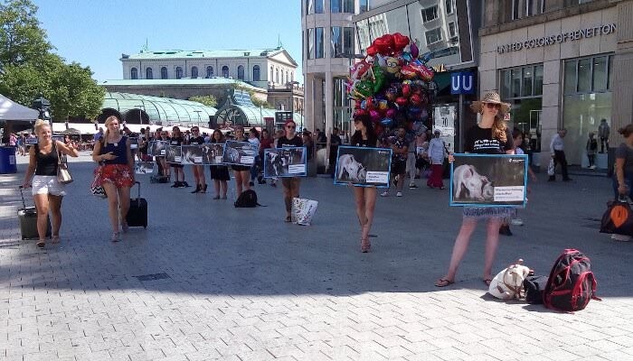 Zu aktuellen Anlässen und Kampagnen sind wir aber ebenso mit gezieltem Protest gegen Unternehmen, die Tierqual unterstützen, aktiv.