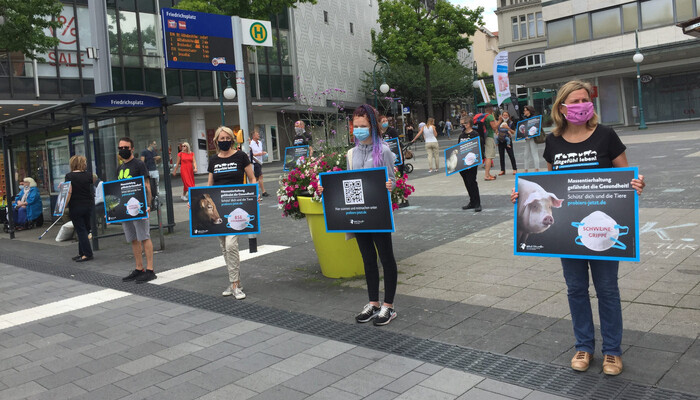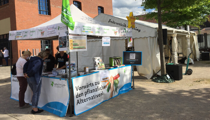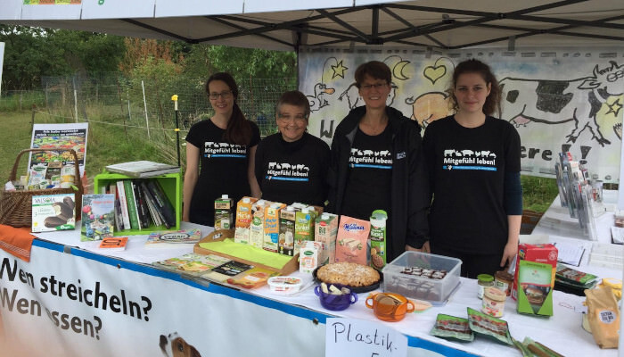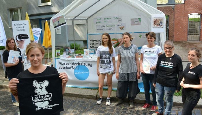 Unser Schwerpunkt ist die Information über die Haltungsbedingungen in der »Nutztierindustrie« und die Heranführung von Passanten und Passantinnen an eine pflanzlichere Lebensweise mit Hilfe der Vegan Taste Week.