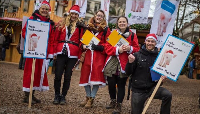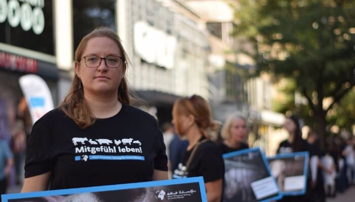 Unsere Aktionsgruppe vertritt die Rechte und die Würde der Tiere mit regelmäßigen Aufzügen, Aktionsständen und Silent Lines in der Kieler Innenstadt. Indem wir die Straßenkampagnen der Albert Schweitzer Stiftung in Kiel durchführen, setzen wir uns aktiv für ein Ende der Massentierhaltung und für die Verbreitung der veganen Lebensweise ein.